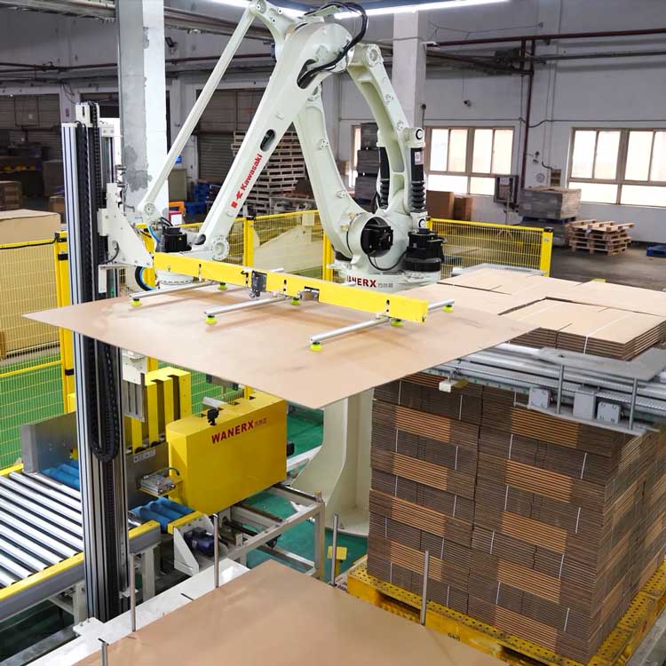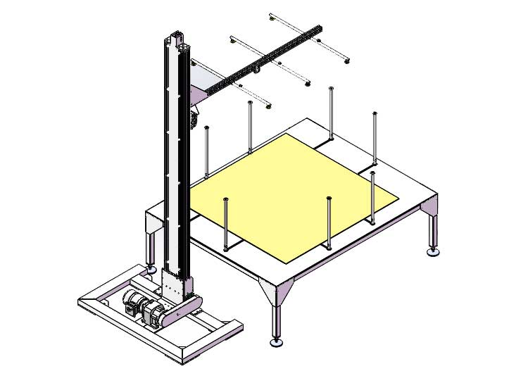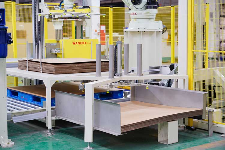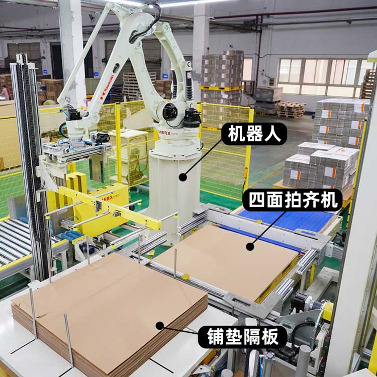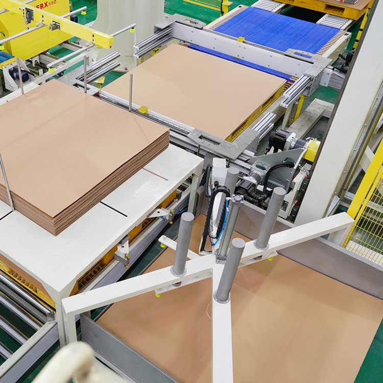 鋪隔板機的作用是通過吸盤和氣缸組合動作實現將整疊隔板和底紙逐一抓取並等待機械手臂將其取走。