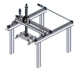 三坐標:前後、左右采用電機+滑軌,上下采用氣缸